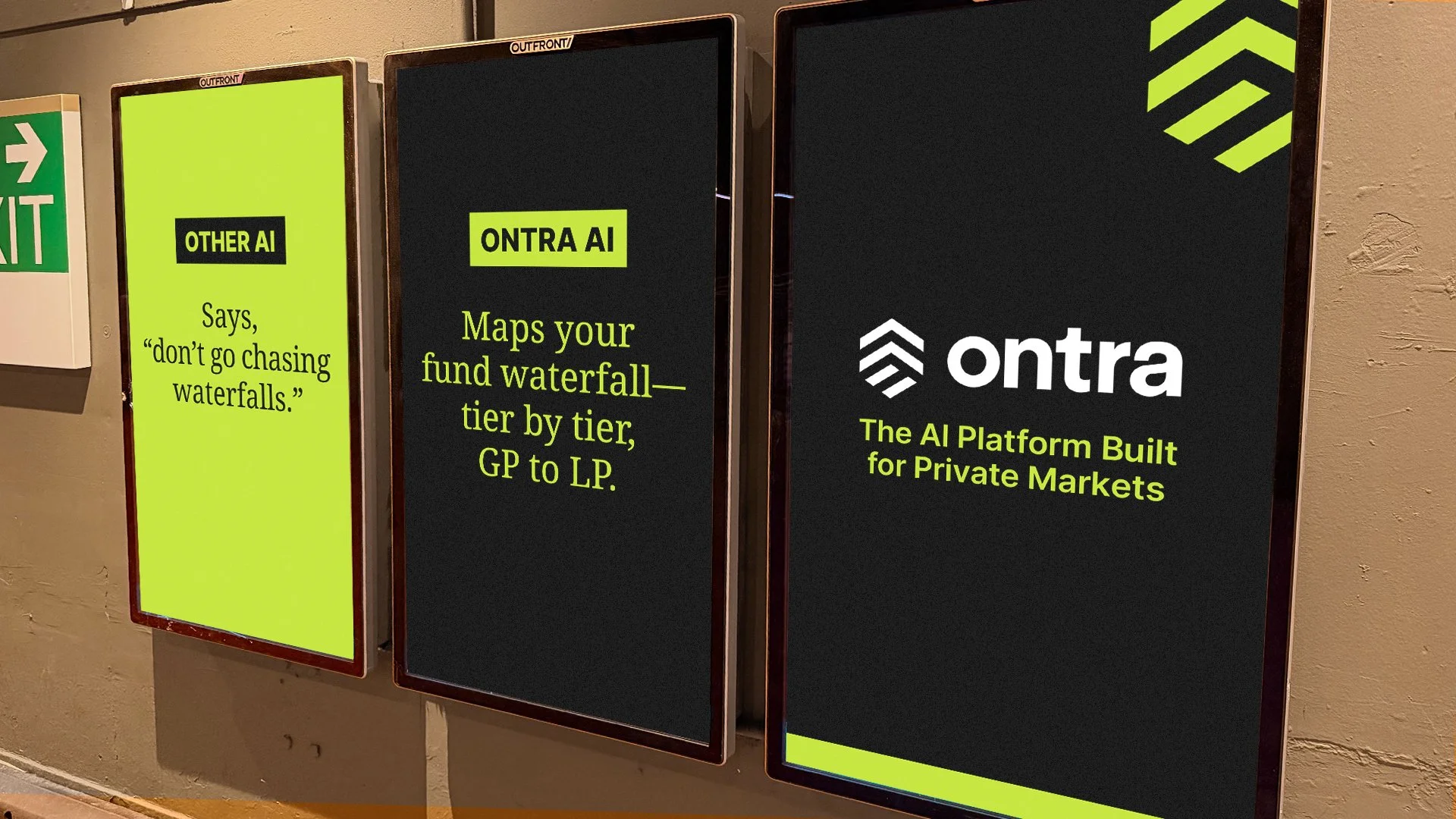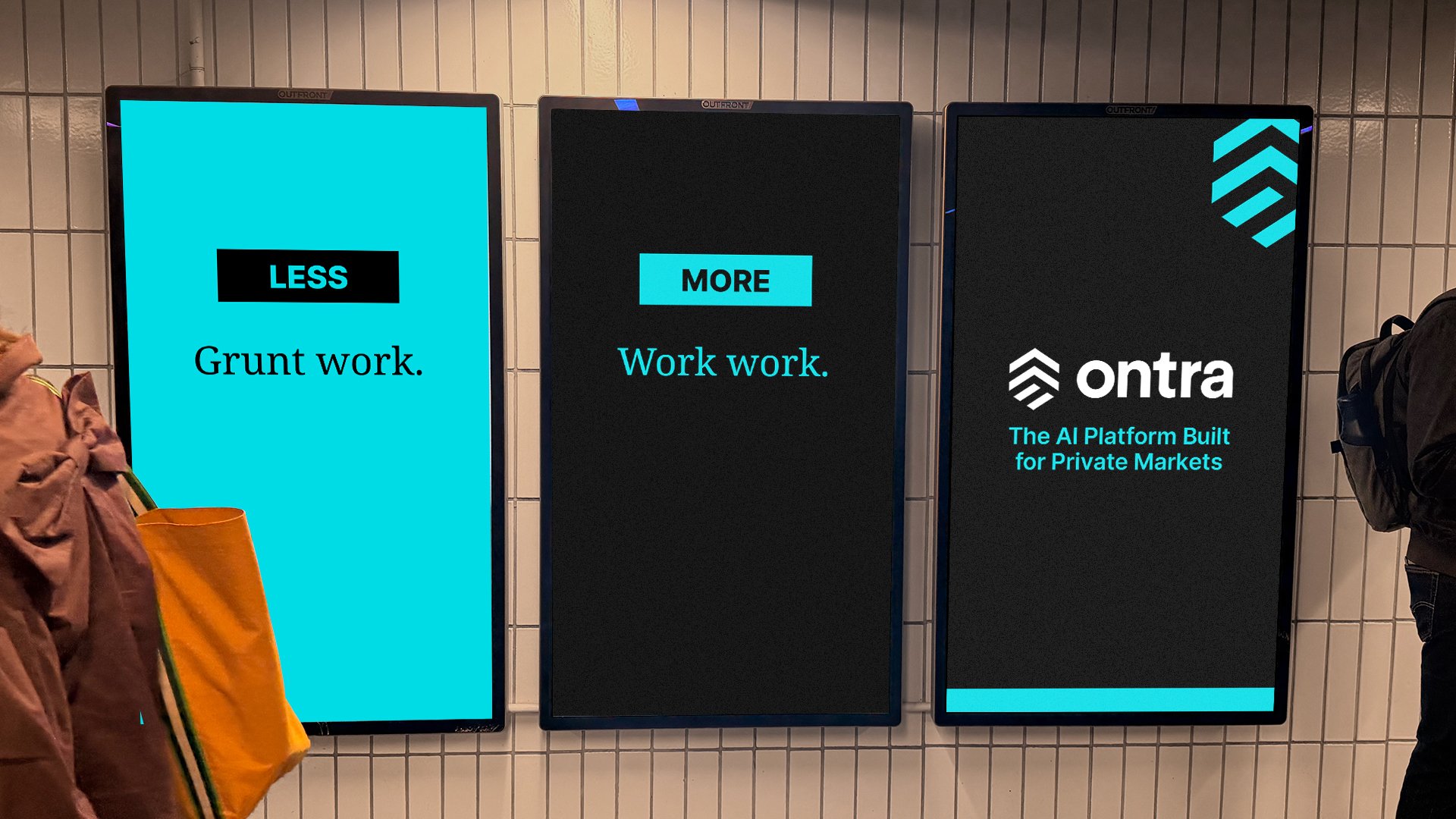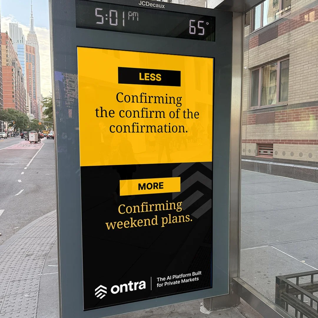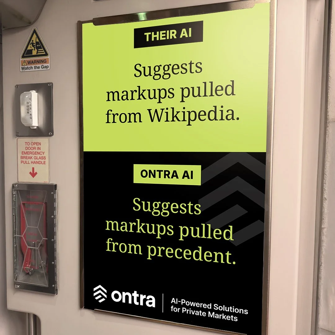 Ontra is the only AI built specifically for private markets. So we launched a bold, hyper-targeted, global campaign that reached all the right people in all the right places—outside their offices, inside their trains, and all over their LinkedIn feeds.