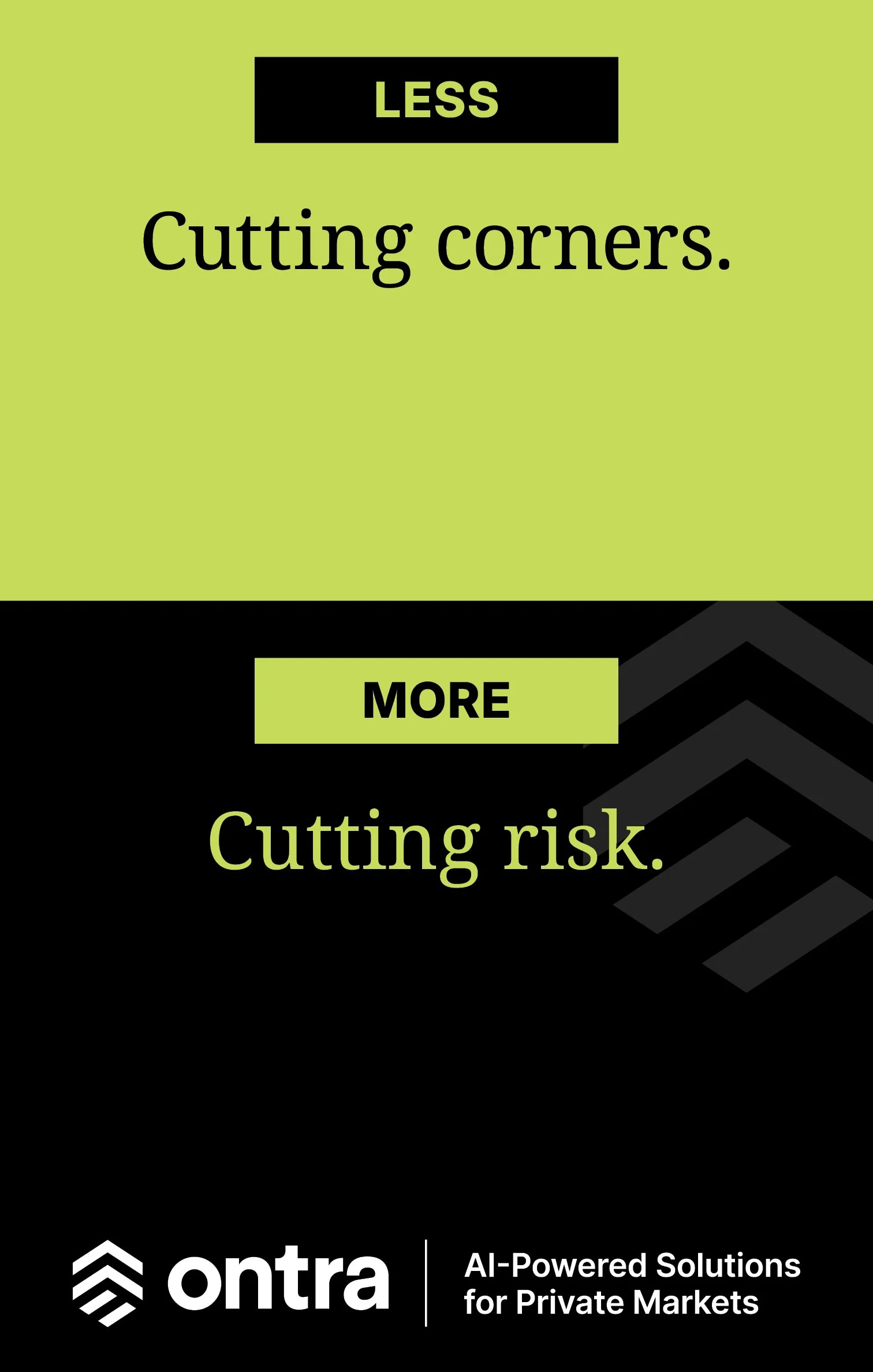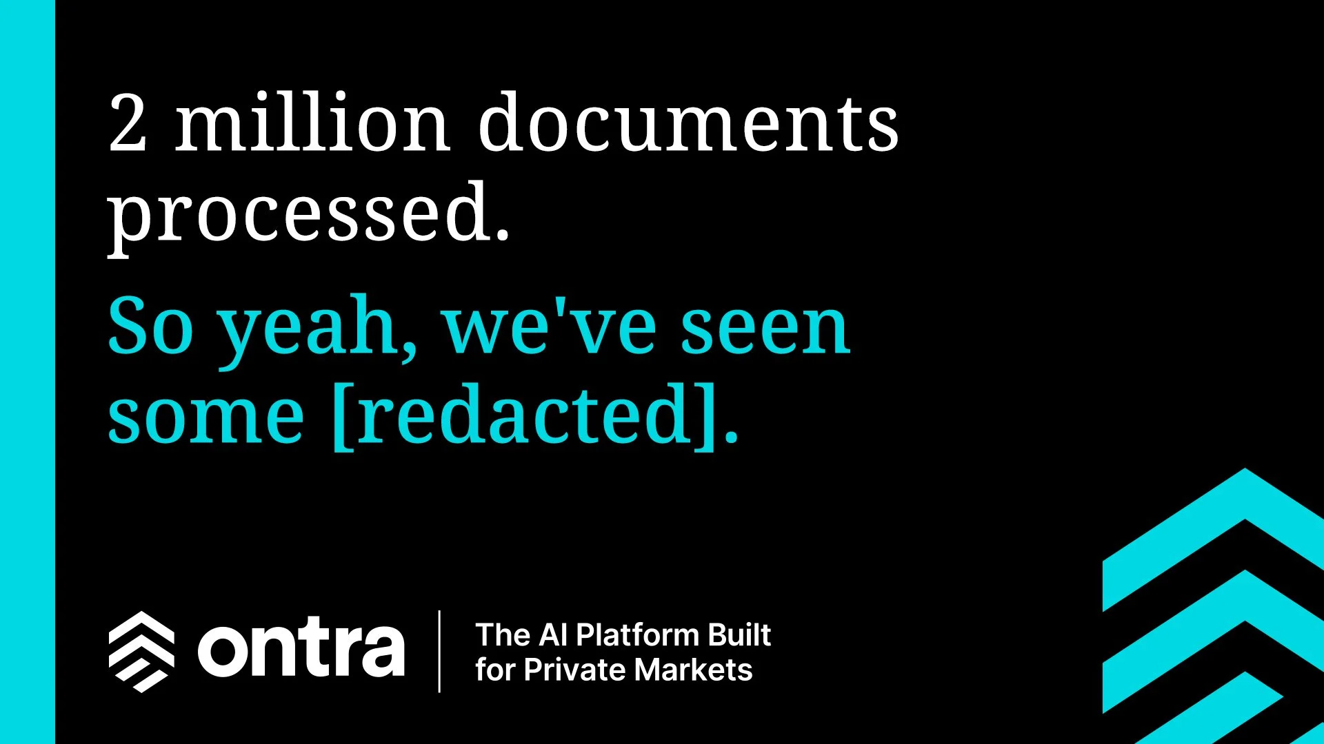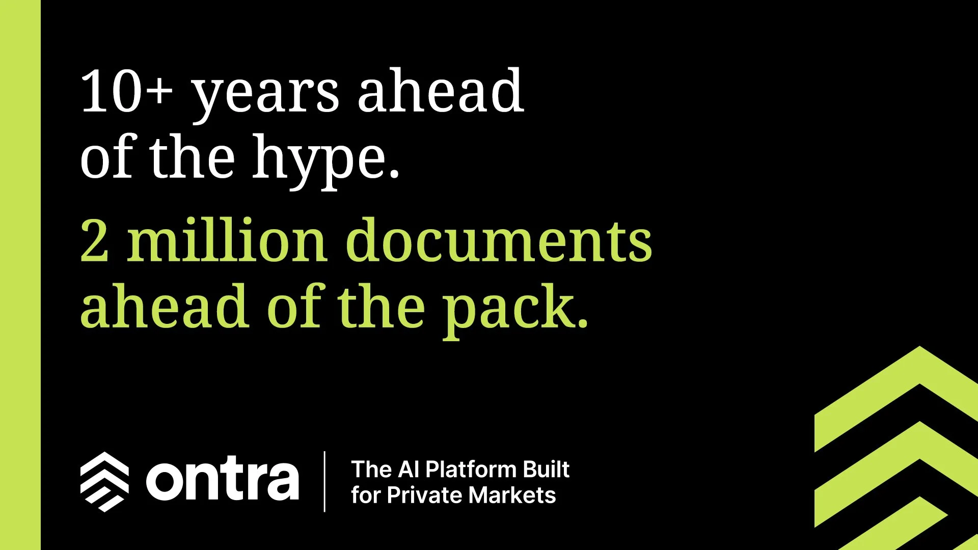Ontra is the only AI built specifically for private markets. So we launched a bold, hyper-targeted, global campaign that reached all the right people in all the right places—outside their offices, inside their trains, and all over their LinkedIn feeds.